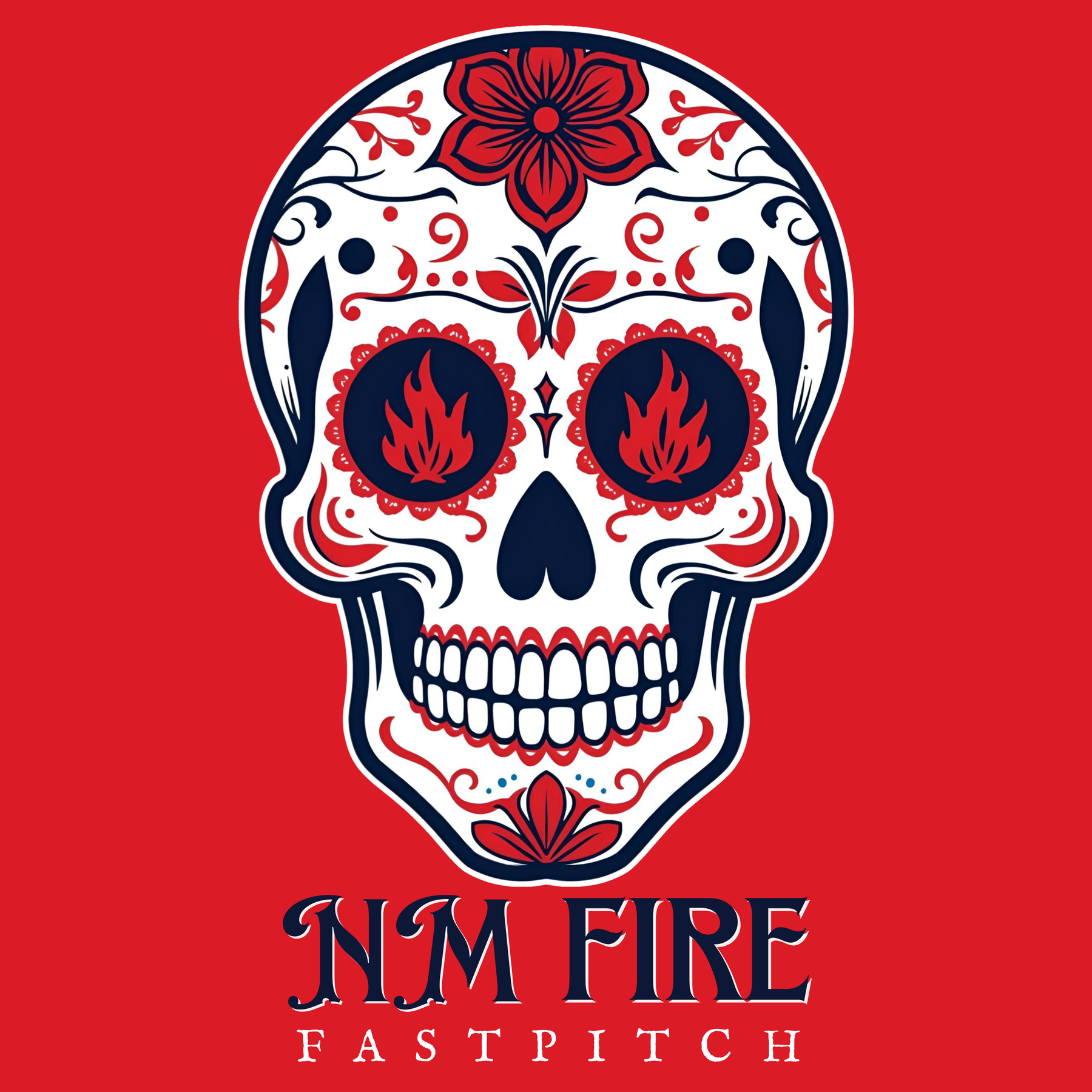 Made for the fans who love tradition, culture, and fierce design. This custom NM Fire sugar skull blends bold lines with fastpitch fire accents — a striking mix of Southwest personality and team pride.